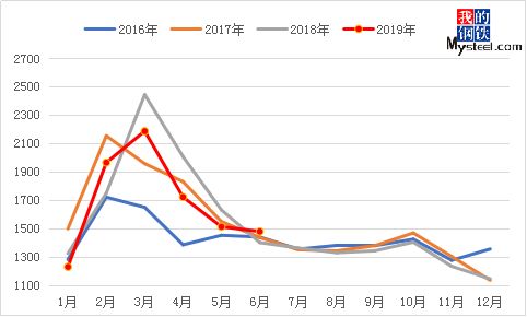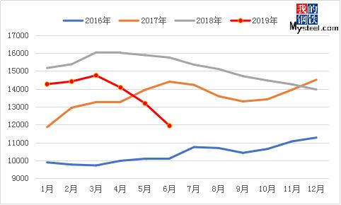 另外,對(duì)于各品種來說,長材的消費(fèi)依舊強(qiáng)勁,板材的造船和汽車行業(yè)都同比下滑的情況下,使得整個(gè)板材的消費(fèi)進(jìn)入低谷期。那么對(duì)于下半年的價(jià)格走勢(shì)依然可能是長強(qiáng)板弱的趨勢(shì)。